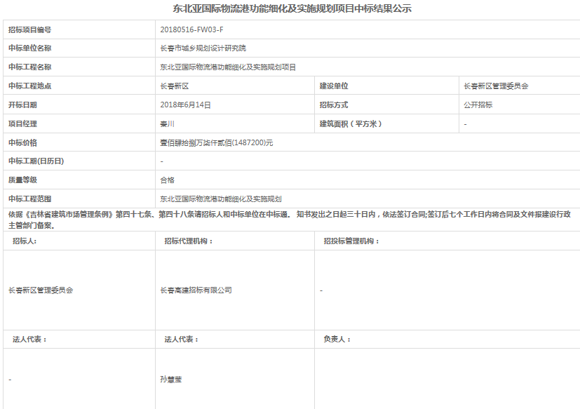 | 标 题: | 东北亚国际物流港功能细化及实施规划项目中标结果公示 | ||