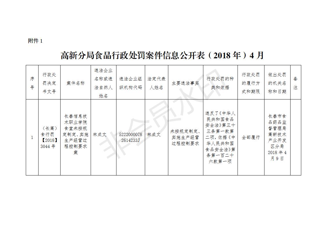 | 标 题: | 食药监高新分局食品行政处罚案件信息公开表(2018年)4月 |