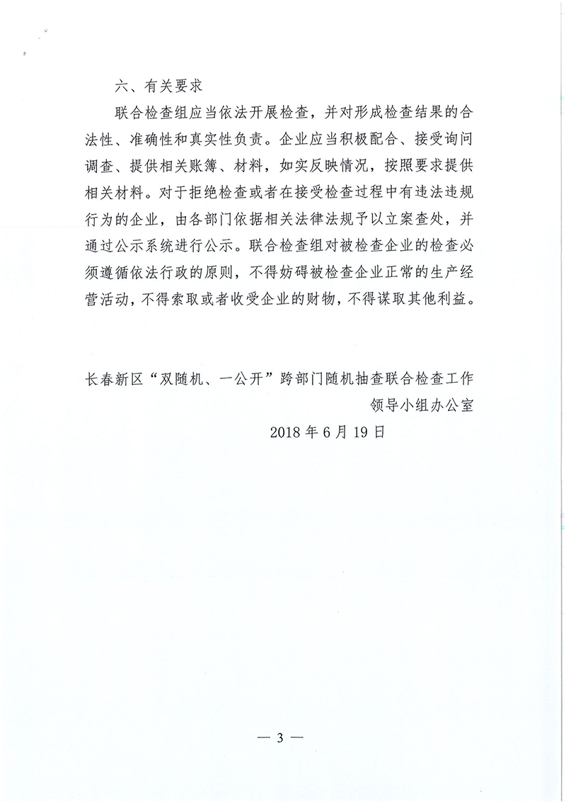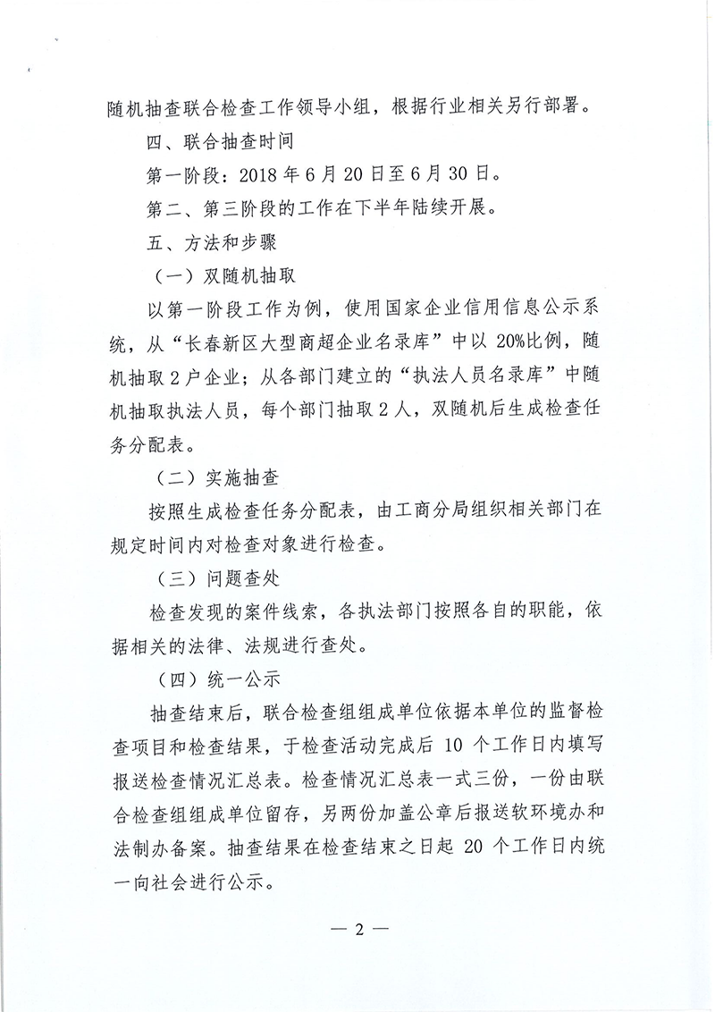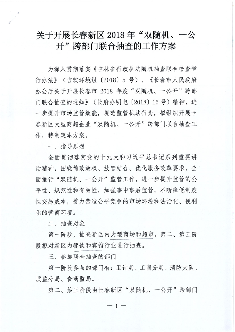 | 标 题: | 关于开展长春新区2018年“双随机、一公开”跨部门联合抽查的工作方案 |
