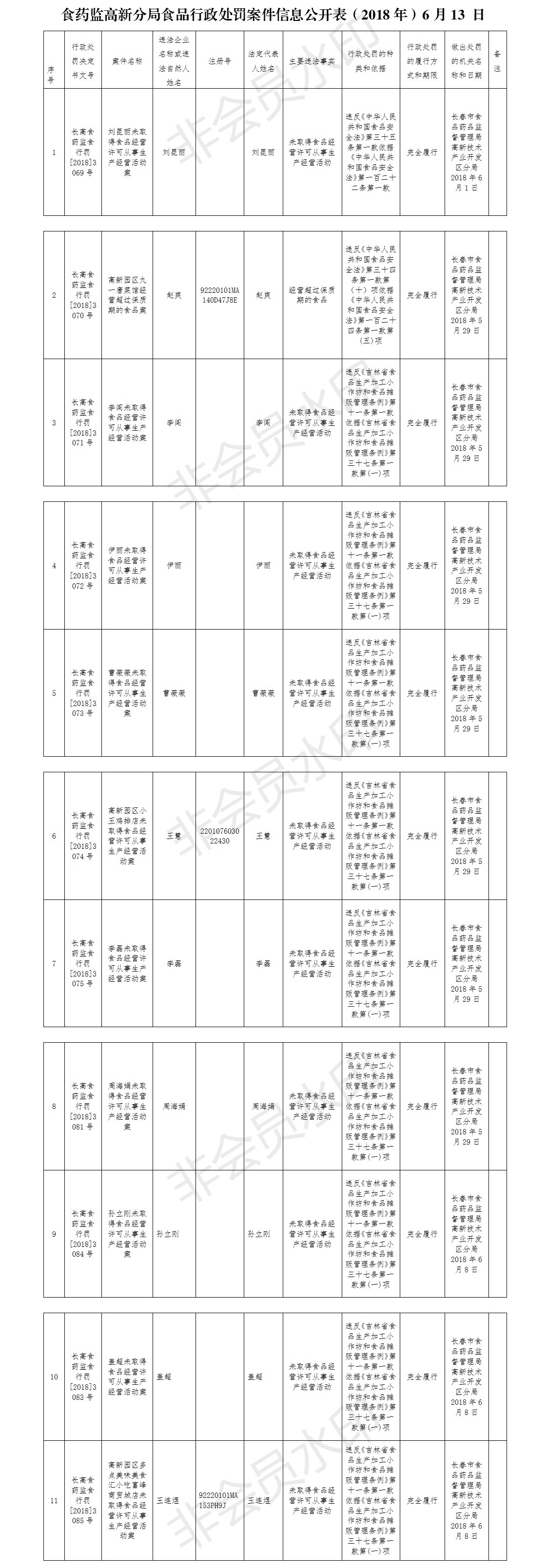 | 标 题: | 食药监高新分局食品行政处罚案件信息公开表(2018年)6月13日 |