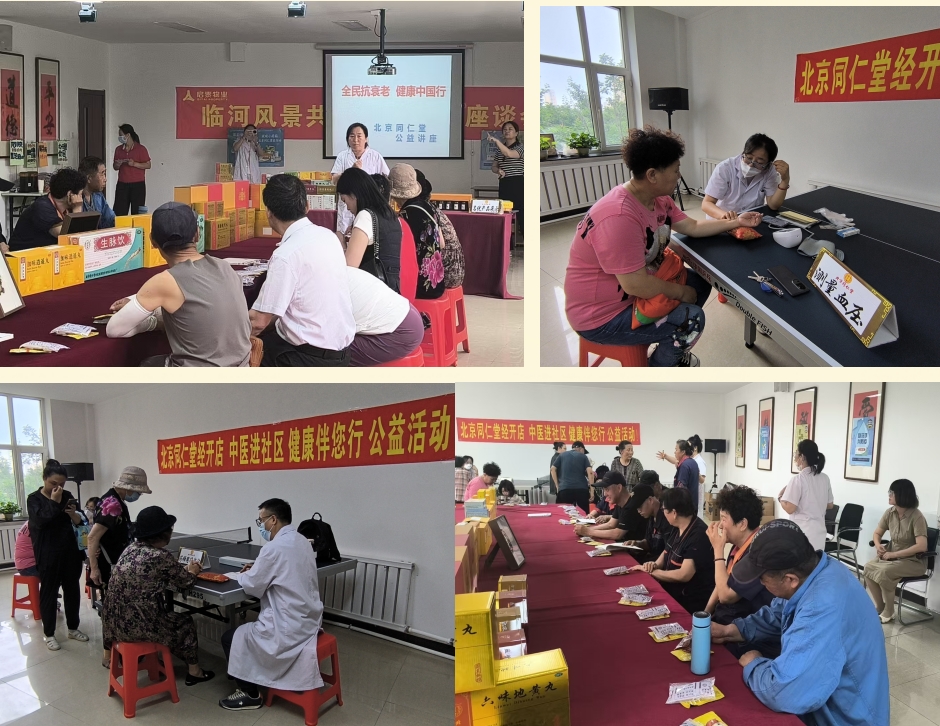 活动现场,由同仁堂中医专家宣讲人体衰老的代表症状和中医中药抗衰老的原理;北京同仁堂长春药店有限责任公司中医主治医师为居民提供中医把脉、面诊、测量血压、解答居民健康咨询等服务。现场还有AI智能机器人为居民检查亚健康情况,以及黄芽汤、酸梅汤、花茶的试饮和阿胶、黑芝麻丸的试吃活动。