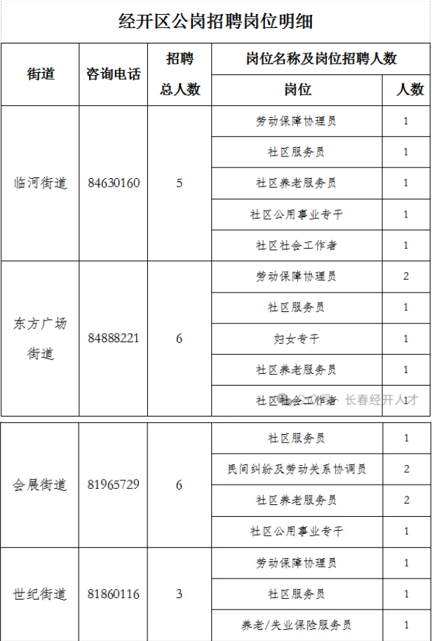为进一步充实长春经济技术开发区所辖社区公益性岗位队伍,充实街镇、社区基层公共服务平台力量,现面向社会公开招聘30名公益性岗位人员。公告如下: