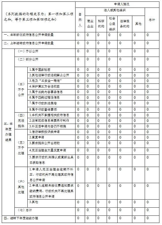 三、收到和处理政府信息公开申请情况