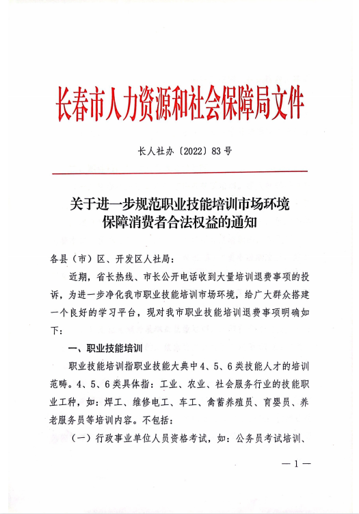 标 题: | 关于进一步规范职业技能培训市场环境保障消费者合法权益的通知 |