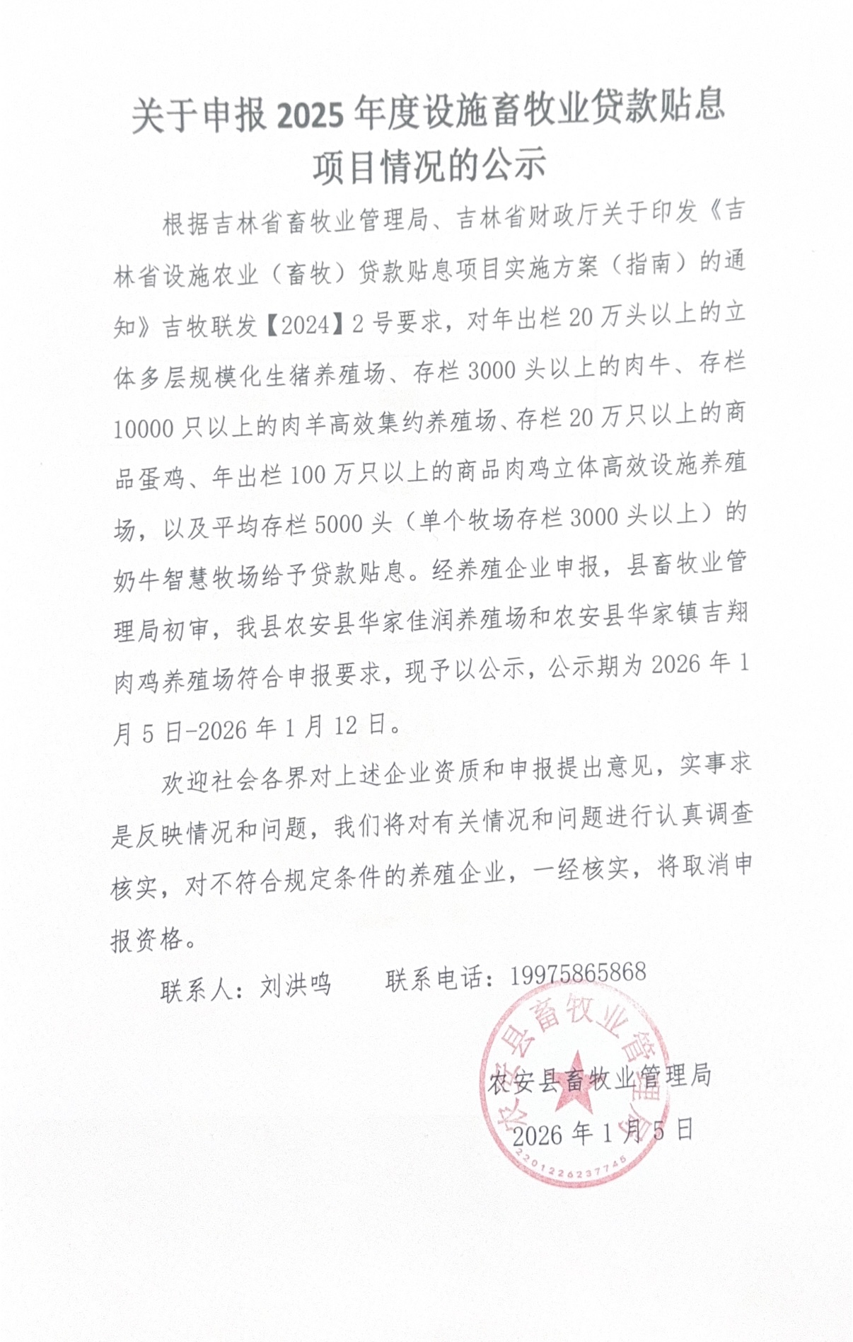 | 发文机关: | 农安县畜牧业管理局 | 成文日期: | 2026年01月05日 |