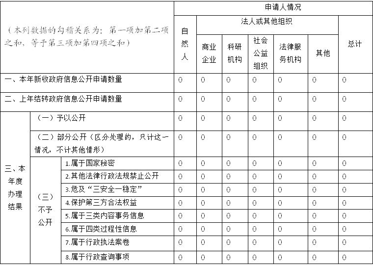 (二)依申请公开方面 规范依申请公开办理流程,明确申请的受理、审查、处理、答复等各个环节的要求,确保依法依规答复,切实维护申请人合法权益。本年度未收到政府信息公开申请。