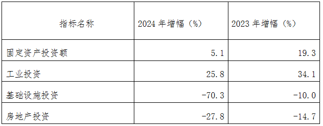 2024年,固定资产投资比上年增长5.1%;其中,工业投资同比增长25.8%。