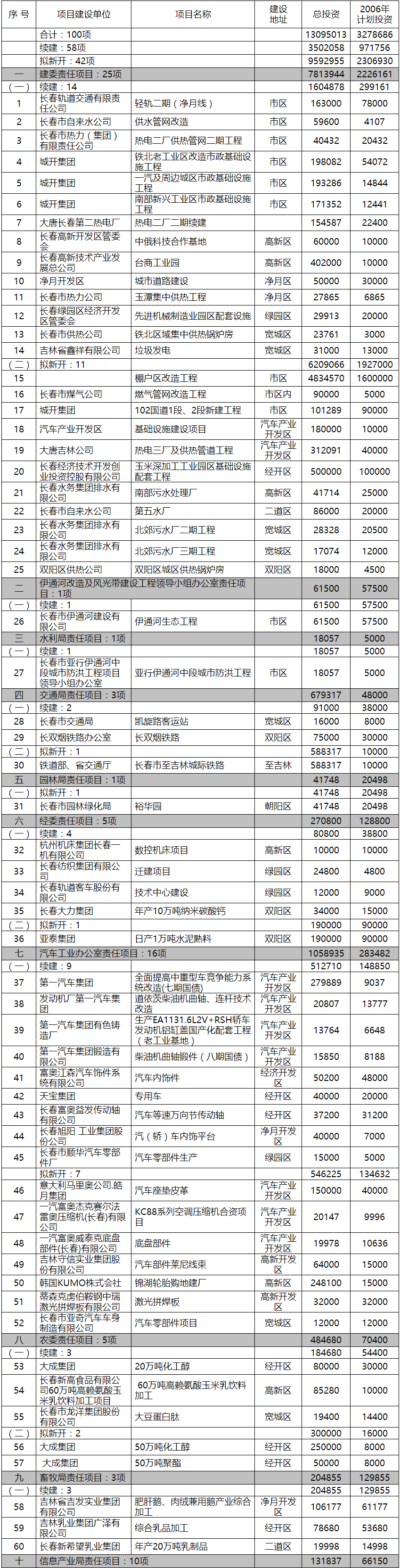 | 标 题: | 长春市人民政府关于下达长春市2006年固定资产投资及重点项目建设任务的通知 | ||