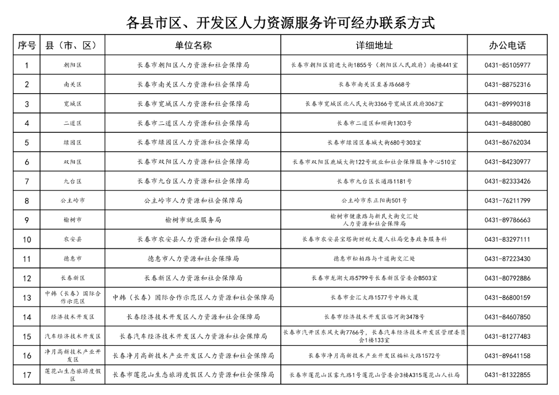 十、各县市区、开发区人力资源服务许可经办联系方式