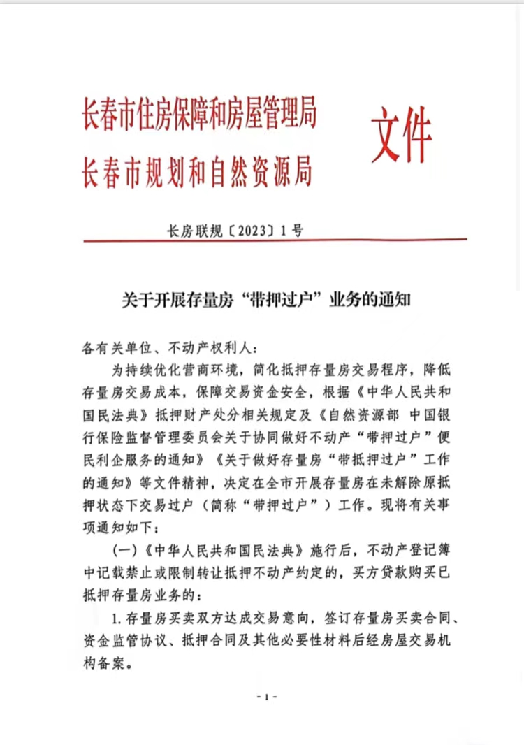 【有效】关于开展存量房“带押过户”业务的通知