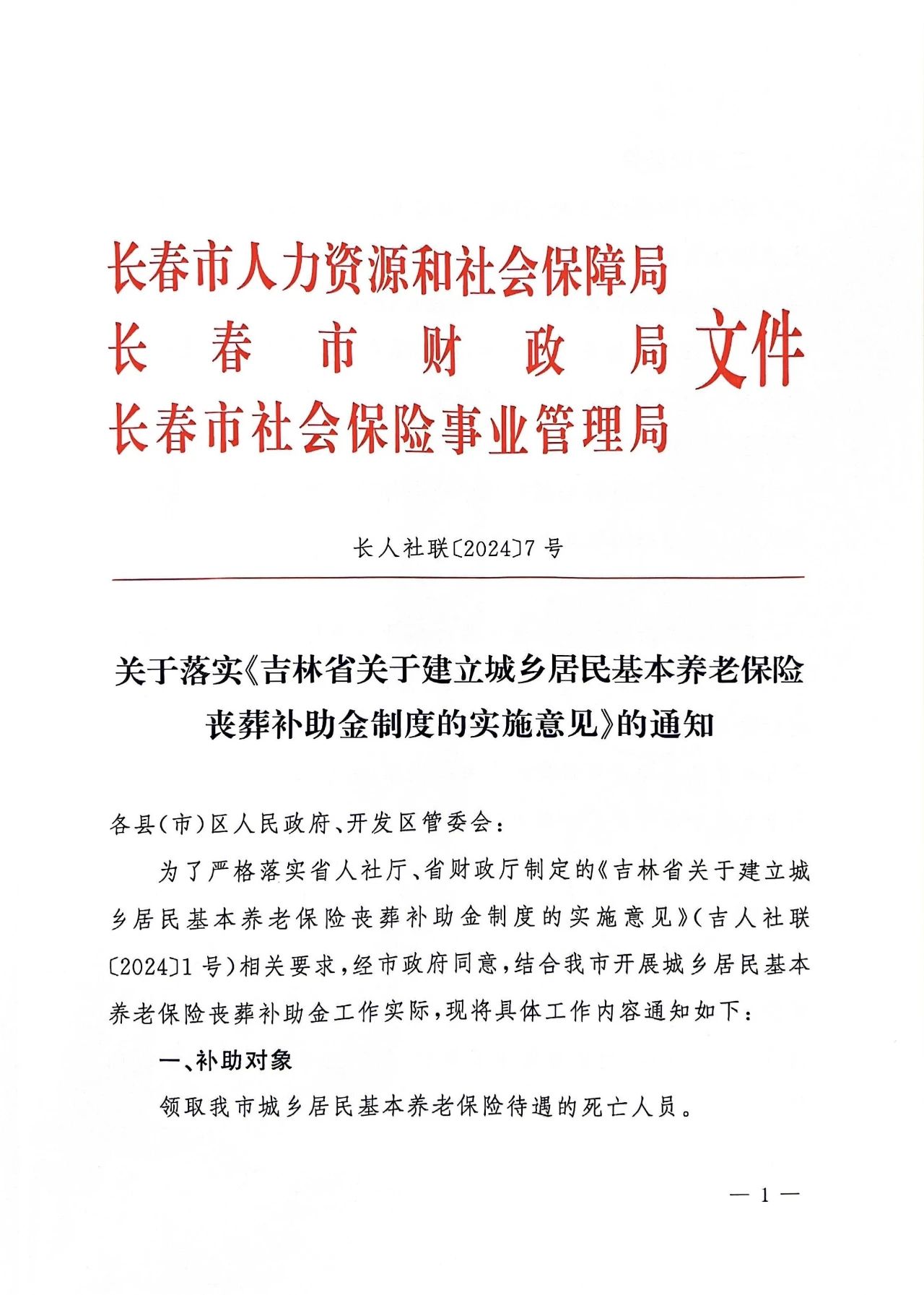 | 标 题: | 关于落实《吉林省关于建立城乡居民基本养老保险丧葬补助金制度的实施意见》的通知 |