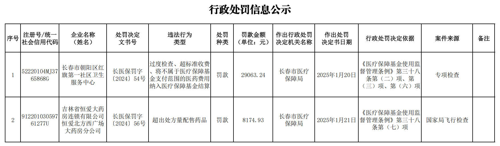 | 索引号: | 11220100MB1921645M/2025-00671 | 分 类: | 行政处罚结果公告 ; 公告 |