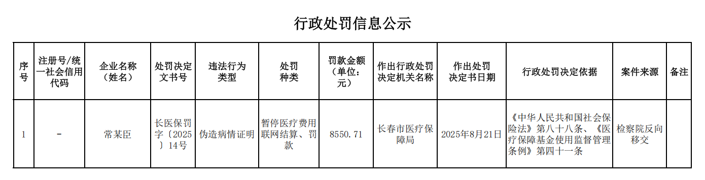索引号: | 11220100MB1921645M/2025-09373 | 分 类: | 行政处罚结果公告 ; 公告 |