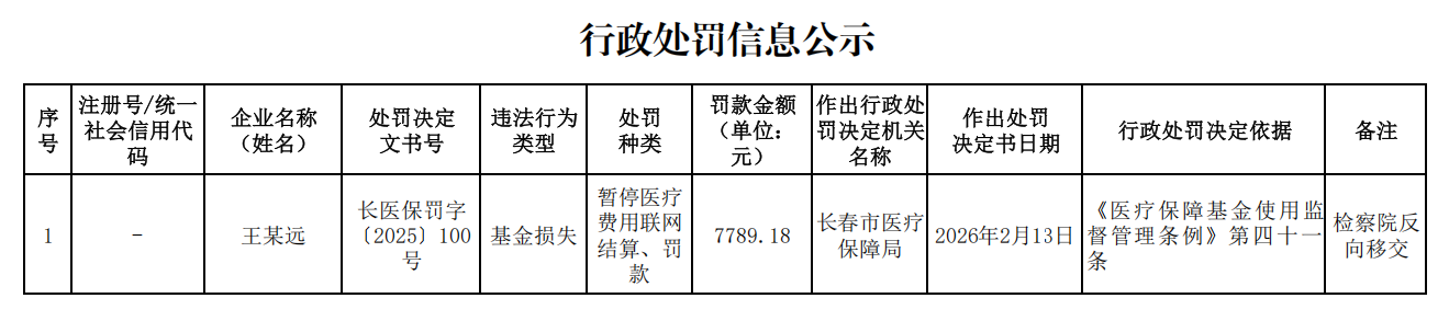 | 索引号: | 11220100MB1921645M/2026-01759 | 分 类: | 行政处罚结果公告 ; 公告 |