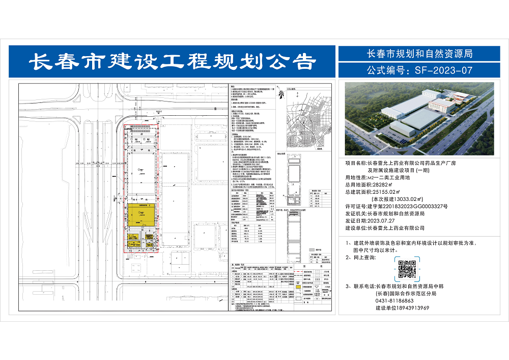 长春雷允上药业有限公司药品生产厂房及附属设施建设项目(一期) |