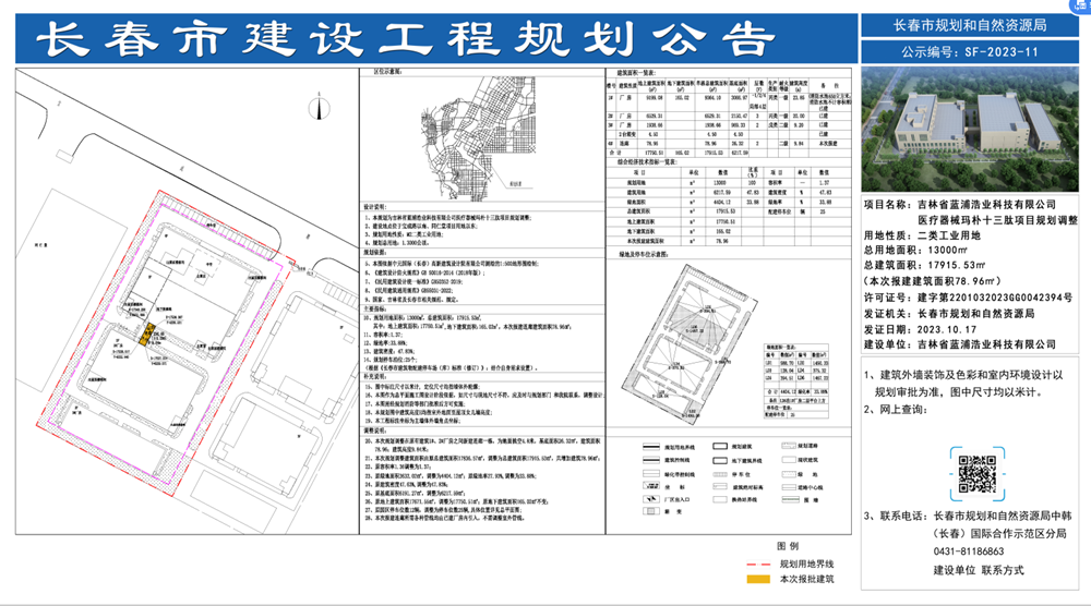| 标 题: | 吉林省蓝浦浩业科技有限公司医疗器械玛朴十三肽项目规划调整 |
