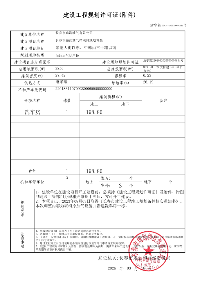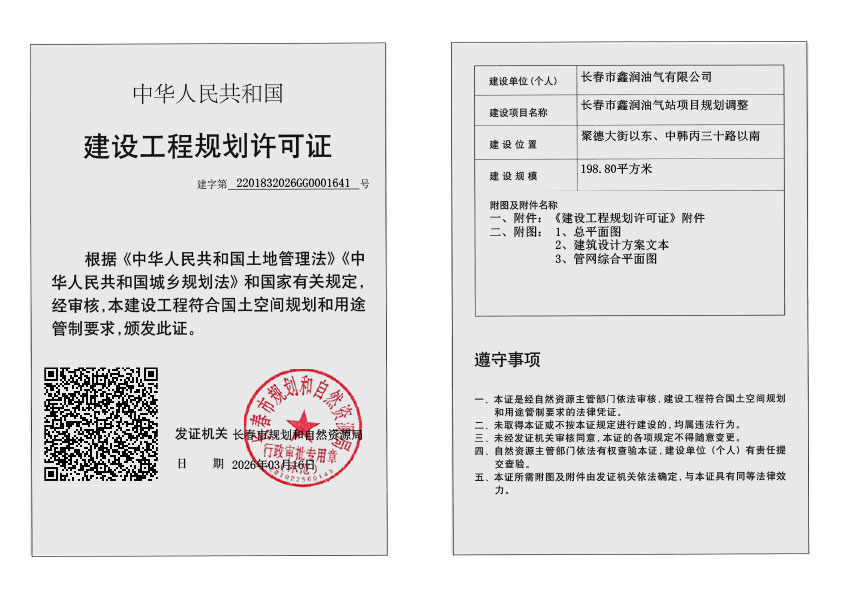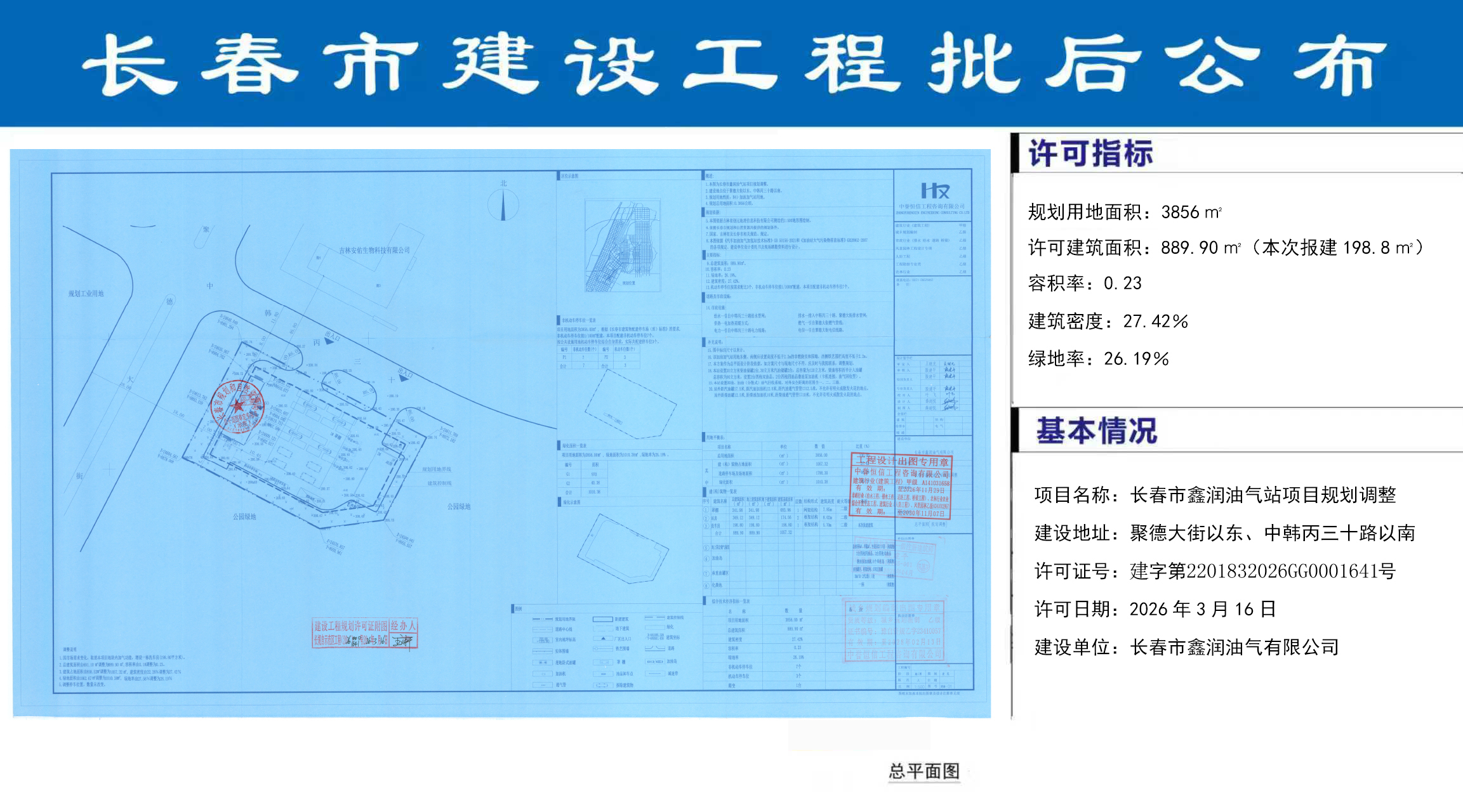 长春市鑫润油气站项目规划调整建设工程规划许可批后公布